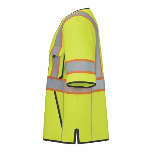 •Reflective trim around side seams on front and back for added low light visibility and style /Two slits at side bottom for mobility .