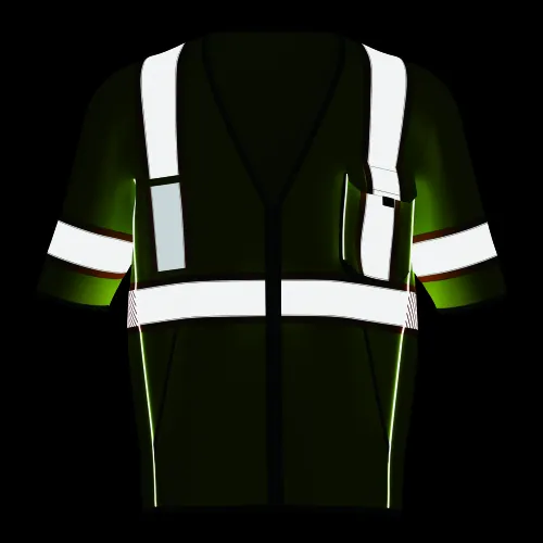 •Left chest heavy duty gusseted radio/utility pocket with reflective piping